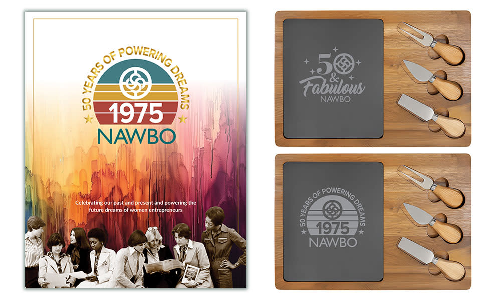 Did you know that you can still get your own commemorative book and cheeseboard that we had at our 50th event? They make perfect holiday gifts for NAWBO board members, speakers and partners! Email Melanie Dunlap with NAWBO HQ’s membership team to get yours (she’ll even throw in a NAWBO-branded bag!).