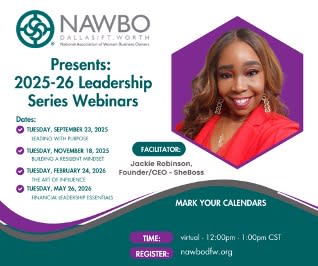 Join the second webinar in this quarterly leadership series designed to equip women entrepreneurs with the tools to lead boldly, advocate confidently and innovate with purpose. Facilitated by Jackie Robinson, founder and CEO of SheBoss, each session includes a 45-minute presentation and 15-minute interactive Q&A to ensure practical takeaways you can apply immediately.